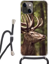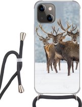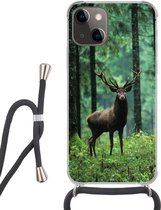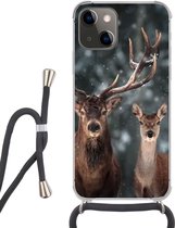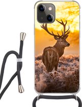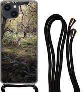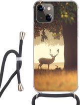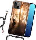 Coque avec cordon iPhone 13 Mini - Forêt - Cerf - Soleil - Arbres - Hiver - Nature - Animaux - Siliconen - Bandoulière - Coque arrière avec cordon - Coque pour téléphone avec cordon - Coque avec corde