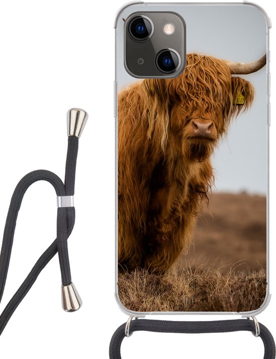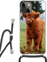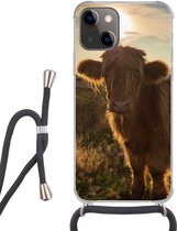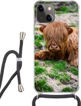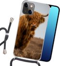 Coque avec cordon iPhone 13 Mini - Highlander écossais - Dune - Herbe - Siliconen - Bandoulière - Coque arrière avec cordon - Coque pour téléphone avec cordon - Coque avec corde