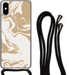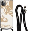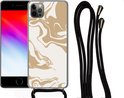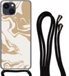 Coque avec cordon iPhone 13 Pro - Imprimé marbré - Beige - Motif - Siliconen - Bandoulière - Coque arrière avec cordon - Coque pour téléphone avec cordon - Coque avec corde