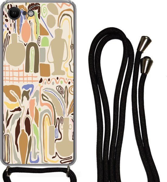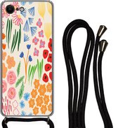 Coque avec cordon iPhone SE 2020 - Bloem - Abstrait - Vase - Pot de fleurs - Siliconen - Bandoulière - Coque arrière avec cordon - Coque pour téléphone avec cordon - Coque avec corde