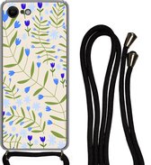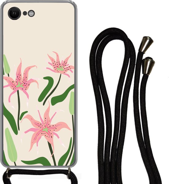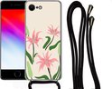 Coque avec cordon iPhone SE 2020 - Bloem - Rose - Feuilles - Siliconen - Bandoulière - Coque arrière avec cordon - Etui pour téléphone avec cordon - Etui avec corde - Cadeaux chaussures - Petits cadeaux - Sinterklaas for big kids