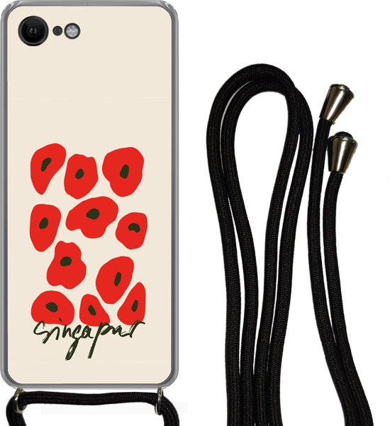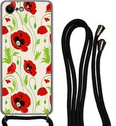 Coque avec cordon iPhone SE 2020 - Fleurs - Coquelicot - Motifs - Siliconen - Bandoulière - Coque arrière avec cordon - Coque pour téléphone avec cordon - Coque avec corde