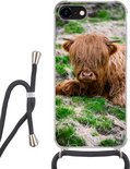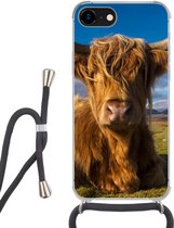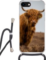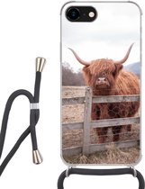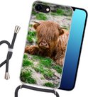 Coque avec cordon iPhone SE 2020 - Highlander écossais - Foin - Herbe - Siliconen - Bandoulière - Coque arrière avec cordon - Coque pour téléphone avec cordon - Coque avec corde