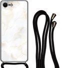 Coque avec cordon iPhone SE 2020 - Imprimé marbré - Wit - Jaune - Siliconen - Bandoulière - Coque arrière avec cordon - Coque pour téléphone avec cordon - Coque avec corde