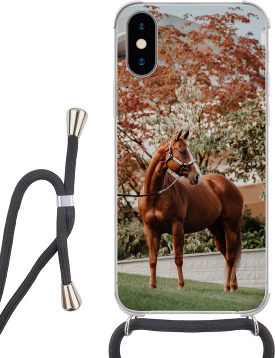 Coque avec cordon iPhone X - Cheval - Arbre - Licol - Siliconen - Bandoulière - Coque arrière avec cordon - Coque pour téléphone avec cordon - Coque avec corde