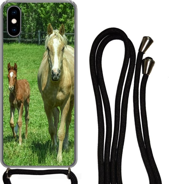 Coque avec cordon iPhone X - Cheval - Poulain - Animaux - Siliconen - Bandoulière - Coque arrière avec cordon - Coque pour téléphone avec cordon - Coque avec corde