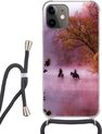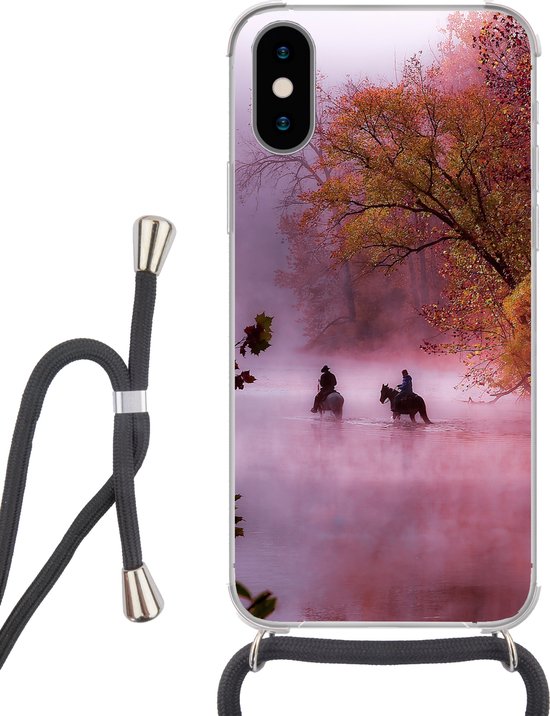 Coque avec cordon iPhone X - Paarden - Brume - Forêt - Siliconen - Bandoulière - Coque arrière avec cordon - Coque pour téléphone avec cordon - Coque avec corde