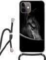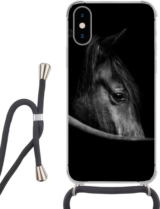Coque avec cordon iPhone X - Paarden - Portrait - Zwart - Animaux - Siliconen - Bandoulière - Coque arrière avec cordon - Coque pour téléphone avec cordon - Coque avec corde