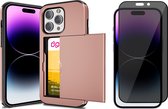 Coque avec porte-cartes pour iPhone 15 Pro Max - Protecteur d'écran FullGuard - Back Cover SlideCase Or Rose & Protecteur d'écran