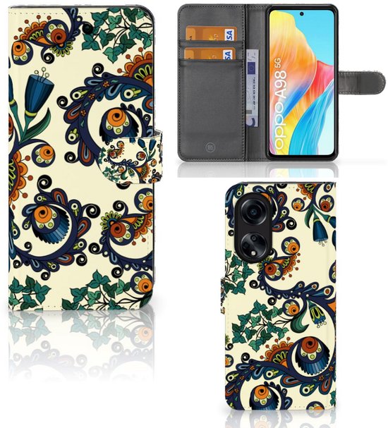 Coque avec pour OPPO A98 5G Portefeuille Baroque Fleur