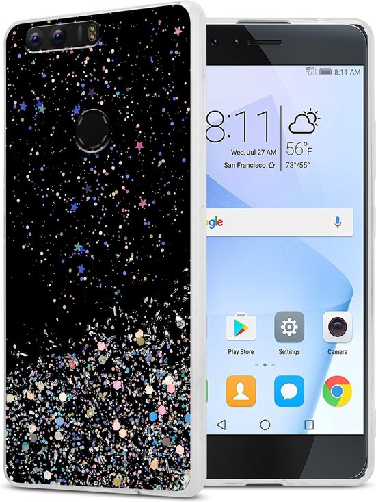 Coque Cadorabo compatible avec Honor 8 / 8 PREMIUM en Zwart avec Glitter - Housse de protection en silicone TPU flexible avec paillettes scintillantes
