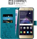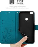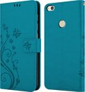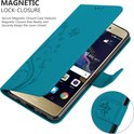Coque Cadorabo pour Huawei P8 LITE 2017 / P9 LITE 2017 en BLEU FLORAL - Coque de protection au design floral avec fermeture magnétique, fonction support et fentes pour cartes