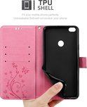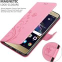Coque Cadorabo pour Huawei P8 LITE 2017 / P9 LITE 2017 en ROSE FLORAL - Coque de protection à motif floral avec fermeture magnétique, fonction support et fentes pour cartes
