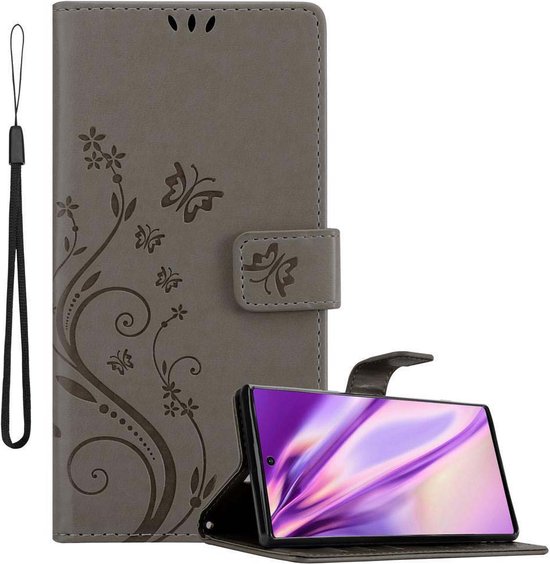 Coque Cadorabo pour Samsung Galaxy NOTE 10 en GRIS FLORAL - Coque de protection à motif floral avec fermeture magnétique, fonction support et fentes pour cartes