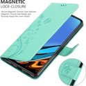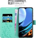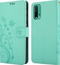 Coque Cadorabo pour Xiaomi RedMi 9T / POCO M3 en FLORAL TURQUOISE - Coque de protection au design floral avec fermeture magnétique, fonction support et fentes pour cartes