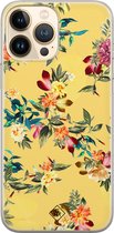Coque Casimoda® - Convient pour iPhone 13 Pro - Garden Floral - Coque de téléphone unie avec protection d'objectif - TPU - Coque arrière - Blauw