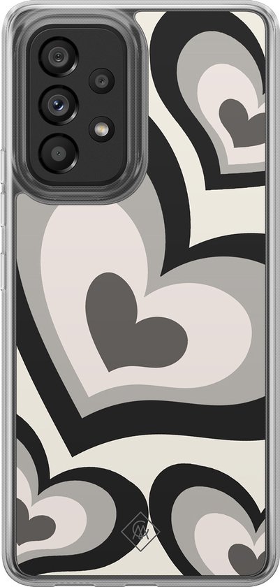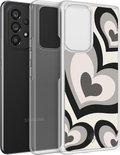 Coque Casimoda® - Convient pour Samsung Galaxy A52 5G - Heart Swirl Zwart - Coque 2 en 1 - Antichoc - Illustration - Bords surélevés - Zwart, Transparent