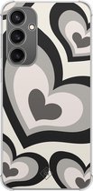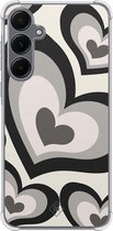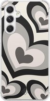 Coque Casimoda® - Convient pour Samsung Galaxy A55 - Heart Swirl Zwart - Coque antichoc - Extra résistante - TPU/polycarbonate - Zwart, Transparent