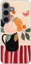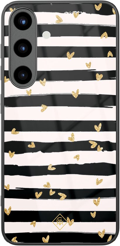 Coque - Compatible avec Samsung Galaxy S25 - Motif cœurs rayés - Coque rigide de Luxe Zwart - Coque arrière pour téléphone - Zwart