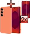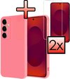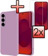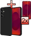 Coque Compatible avec Samsung S25 Coque Arrière en Siliconen avec 2 Protecteurs d'Écran - Zwart