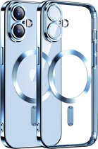Coque Compatible iPhone 16 Magsafe - Blauw - Coque arrière avec protection en verre pour appareil photo intégrée