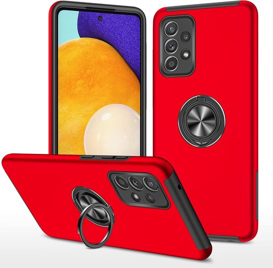Coque de téléphone avec bague et aimant pour support de téléphone - Coque adaptée pour : Samsung Galaxy A33 5G - Coque rigide anti-chute - Rouge