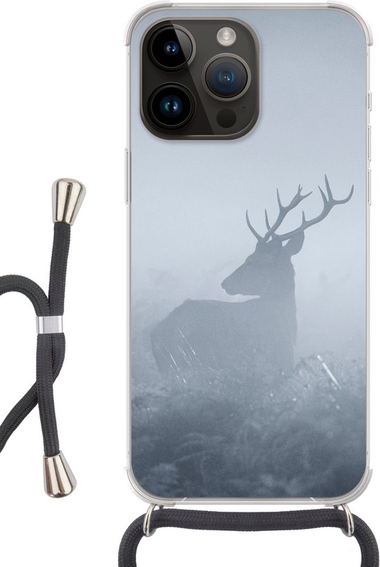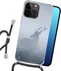Coque de téléphone compatible avec Apple iPhone 14 Pro - Cerf - Brume - Forêt - Siliconen - Bandoulière - Coque arrière avec cordon - Coque avec cordon - Coque avec corde