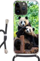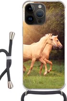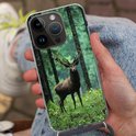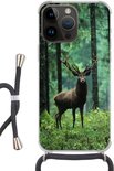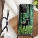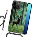 Coque de téléphone compatible avec Apple iPhone 14 Pro - Cerf - Forêt - Arbres - Animaux - Nature - Siliconen - Bandoulière - Coque arrière avec cordon - Coque de téléphone avec cordon - Coque de téléphone avec corde
