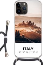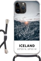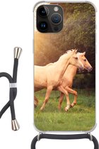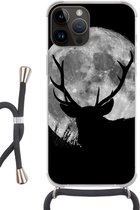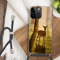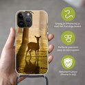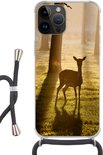 Coque de téléphone compatible avec Apple iPhone 14 Pro Max - Cerf - Soleil - Arbres - Siliconen - Bandoulière - Coque arrière avec cordon - Coque de téléphone avec cordon - Coque avec corde