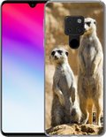 Coque de téléphone compatible avec Huawei P40 Lite - Rocher - Suricates - Animaux - Coque en Siliconen