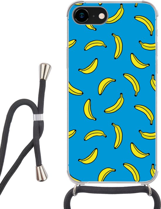 Coque de téléphone compatible avec iPhone SE 2020 - Bananes - Jaune - Blauw - Imprimé - Siliconen - Bandoulière - Coque arrière avec cordon - Coque de téléphone avec cordon - Coque avec corde Coque de téléphone