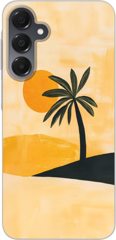 Coque de téléphone compatible avec Samsung Galaxy A16 5G - Illustration - Palmier - Soleil - Collines - Coque en Siliconen
