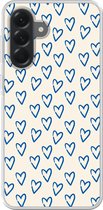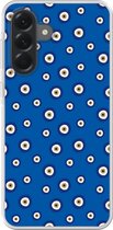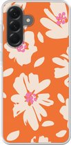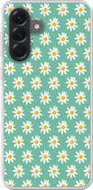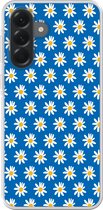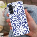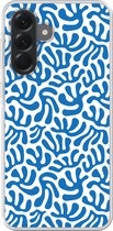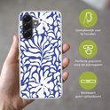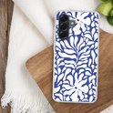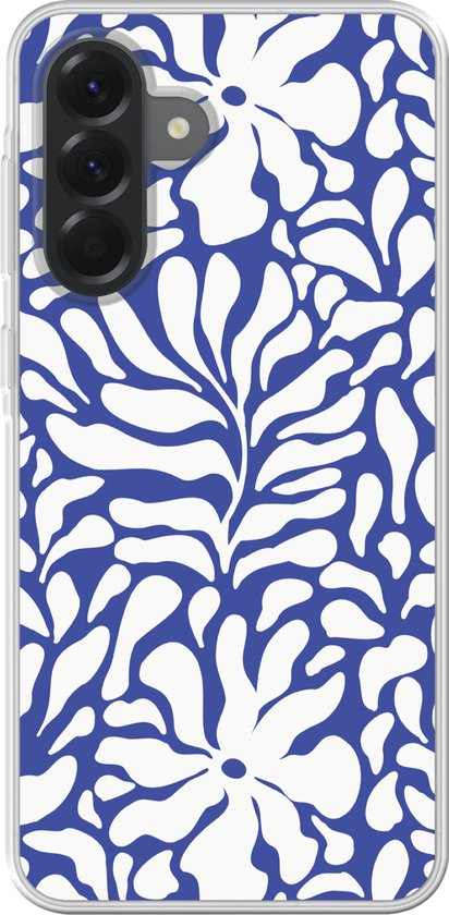 Coque de téléphone compatible avec Samsung Galaxy A56 - Motif Fleurs - Blauw - Wit - Feuilles - Coque en Siliconen