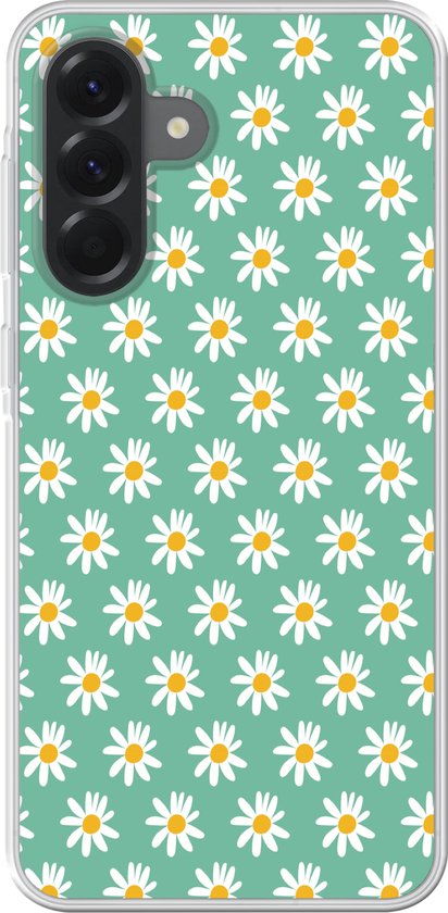 Coque de téléphone compatible avec Samsung Galaxy A56 - Motif marguerites - Vert - Fleurs - Coque en Siliconen