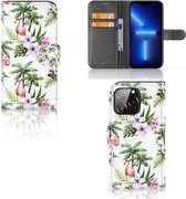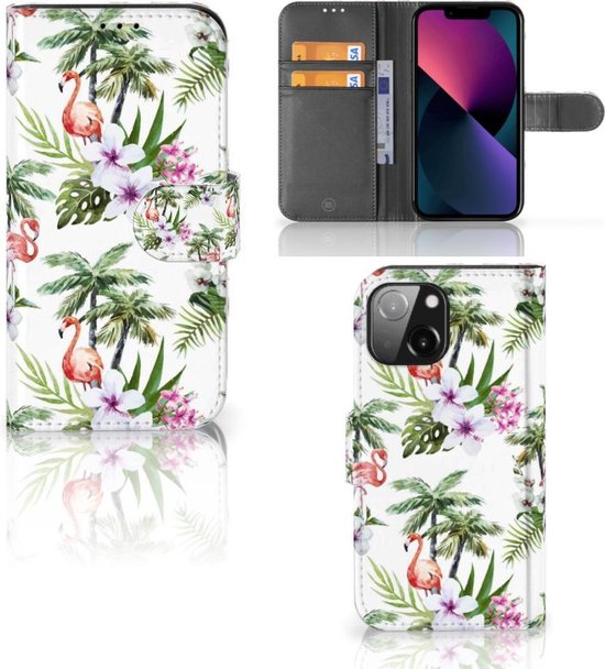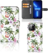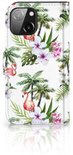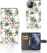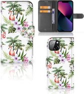 Coque de téléphone iPhone 13 Mini Flip Case avec naam Flamingo Palms Convient pour iPhone 13 Mini