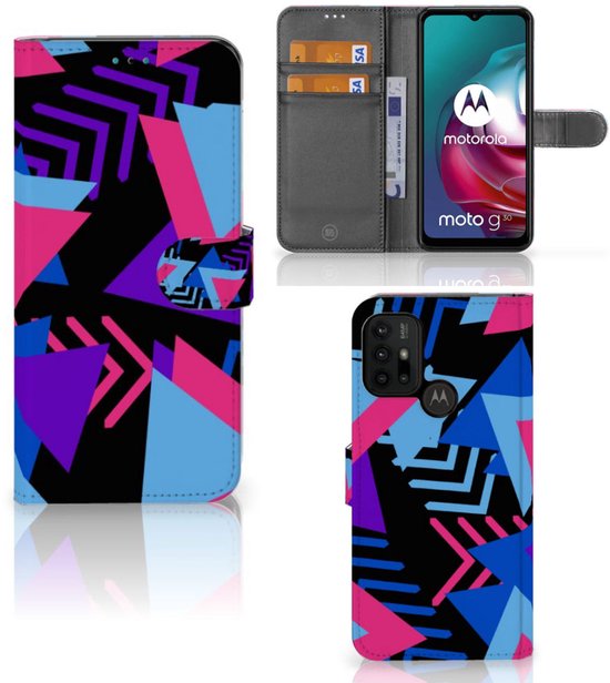 Coque de téléphone Motorola Moto G10 | G20 | G30 Wallet Book Case Design Funky Triangle