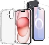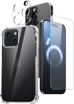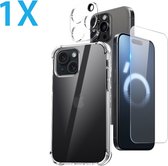 Coque en silicone antichoc transparente avec 1 Glas de protection d'écran et 1 protection lens d'appareil photo Convient pour : iPhone 15 Pro