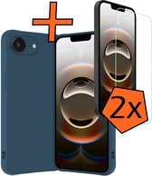 Coque en Siliconen pour iPhone 16 avec 2 films de protection d'écran - Coque en Siliconen pour iPhone 16 - Bleu foncé