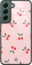 Coque en verre Samsung Galaxy S22 - Blossom - Multi - Hard Case Zwart - Coque arrière pour téléphone - Fleurs - Casimoda