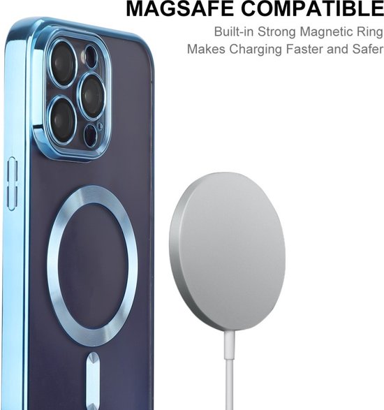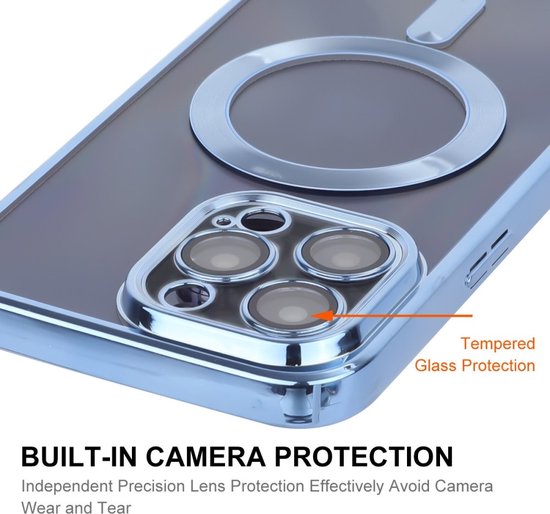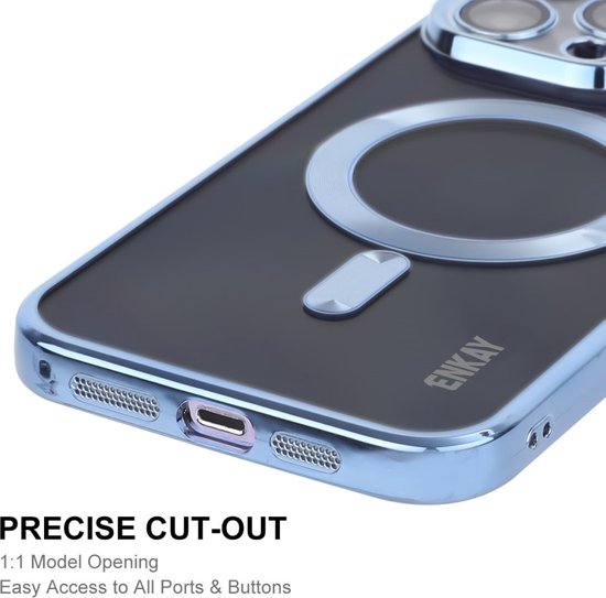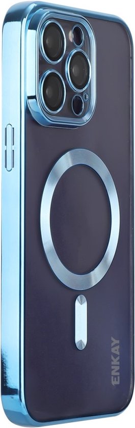 Coque ENKAY - Convient pour iPhone 16 Pro Max - Coque arrière ENKAY en TPU métallisé avec protecteur d'objectif d'appareil photo - Compatible MagSafe - Blauw