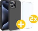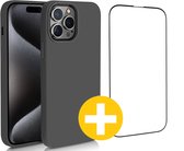 Coque et protection d'écran pour iPhone 15 Pro Max : coque en Siliconen noire + 2 protections d'écran