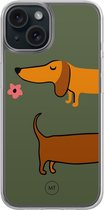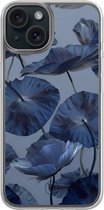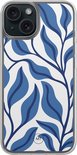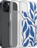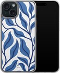 Coque hybride adaptée à iPhone 14 - Feuilles Blue - Protection Extra - Coque de protection de Luxe - Coque en TPU - Transparente, Blauw - Belles Housses de téléphone