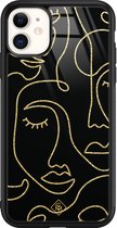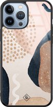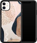Coque iPhone 11 en verre - Pois abstraits - Marron/beige - Hard Case Zwart - Coque arrière pour téléphone - Motif géométrique - Casimoda