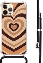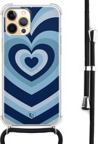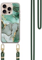 Coque iPhone 12 Pro Max avec cordon - Design marbré - Coque en Siliconen avec impression - Résistant aux chocs - Protection Extra - Cordon noir inclus - Bandoulière - Coque arrière - Transparent, Vert