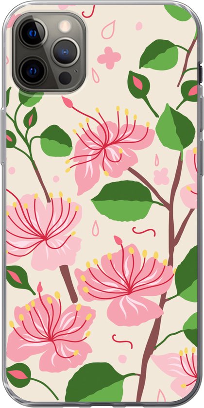 Coque iPhone 12 Pro Max - Bloem - Rose - Feuille - Motif - Coque de téléphone en Siliconen