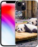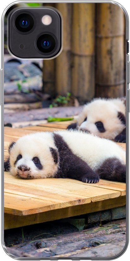 Coque iPhone 13 mini - Pandas - Sol - Bois - Siliconen