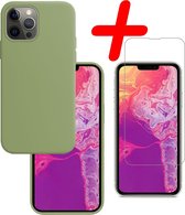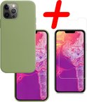 Coque iPhone 13 Pro Siliconen Avec 2x Protecteurs D'écran - 2x Protecteurs D'écran iPhone 13 Pro Tempered Glass - iPhone 13 Pro Coque Siliconen Verte Avec Verre De Protection