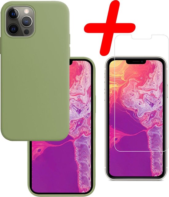 Coque iPhone 13 Pro Siliconen Avec 2x Protecteurs D'écran - Coque iPhone 13 Pro Avec 2x Protecteurs D'écran Verte - Coque iPhone 13 Pro - Verte
