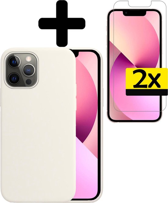 Coque iPhone 13 Pro Etui Siliconen Avec 2x Protecteur D'écran - Coque Etui iPhone 13 Pro Avec 2x Protecteur D'écran - Wit