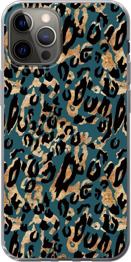 Coque iPhone 13 Pro - Imprimé panthère - Zwart - Marron - Turquoise - Siliconen